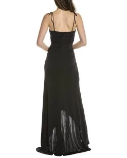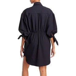 DetailsDry clean only. Unlined. Hidden side zipper closure. Buttoned placket at neckline with cap sleeves. Jersey fabric with ruched waist.