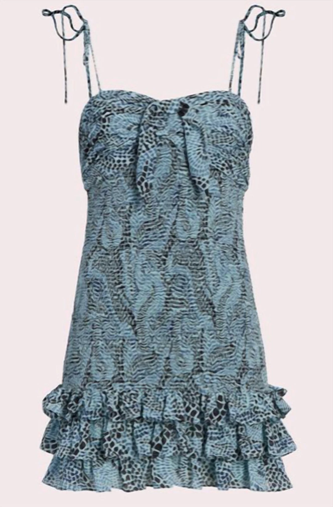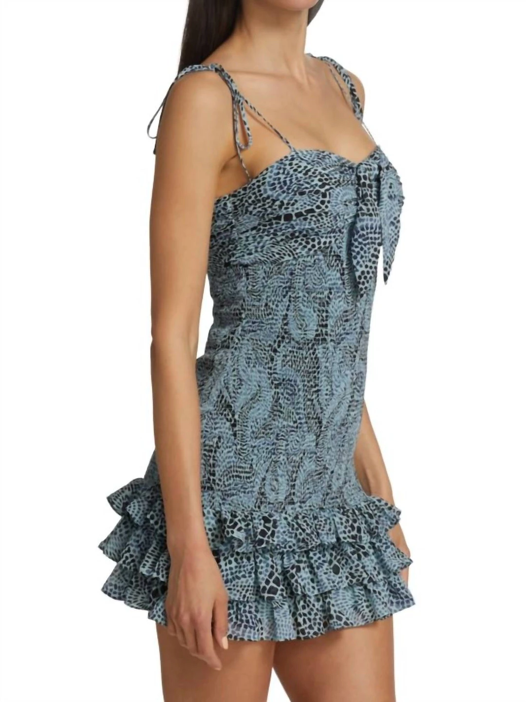 Mixed prints add texture to this ruffled mini dress.Sweetheart neckline with tieSelf-tie spaghetti strapsConcealed back zipLayered ruffle hemPolyesterLinedDry cleanImportedSIZE & FITAbout 33″ from shoulder to hemModel measurements – 5’10” tallModel is wearing a US size Small